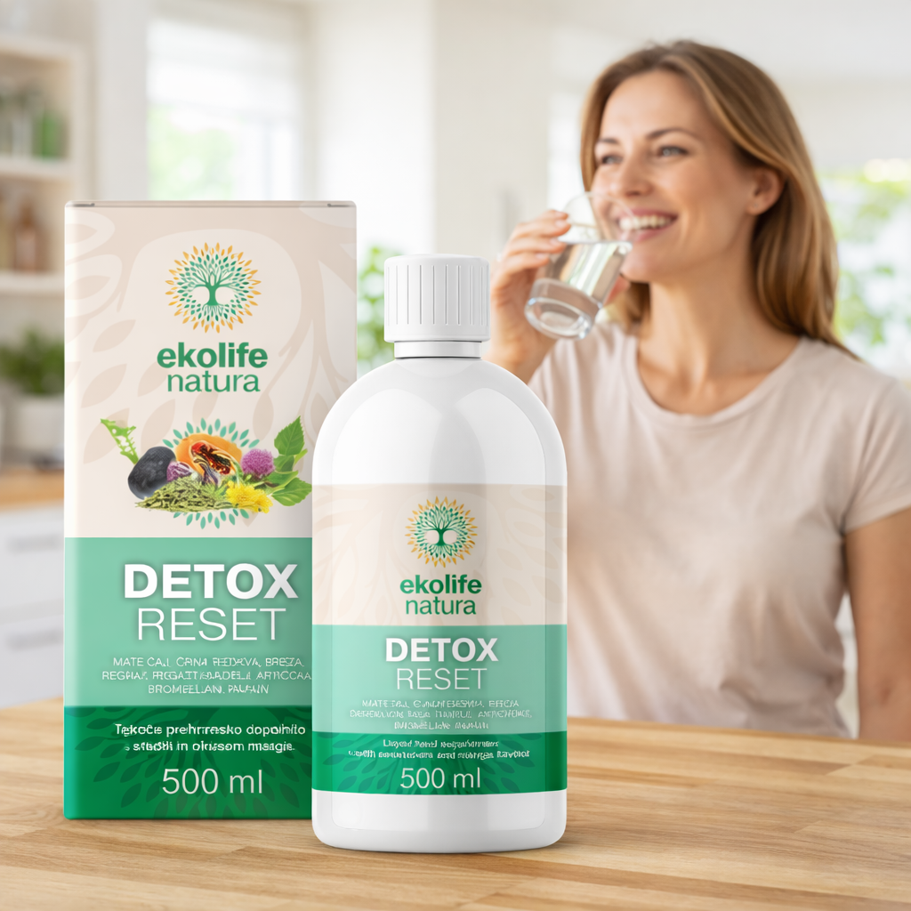 Detox Reset je tekoče prehransko dopolnilo z rastlinskimi izvlečki in naravnimi prebavnimi encimi za podporo normalnemu delovanju jeter, prebave in presnovnih procesov.